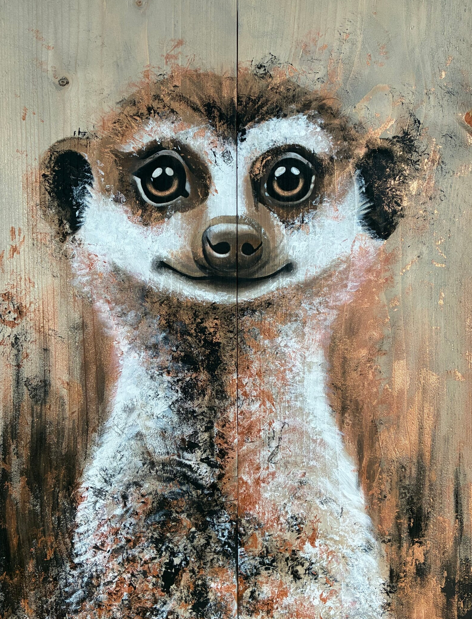 Kunst op steigerhout met een zwart-wit-metallic kleurenpallet